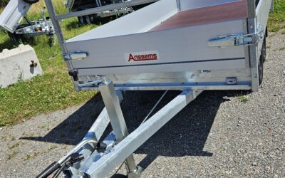Réhausses ridelles alu 560 mm, roue de secours avec support, câble arrimage sur hayon basculant, roue jockey automatique, plancher bois antidérapant, 4 œillets d’arrimage, remorque freinée…